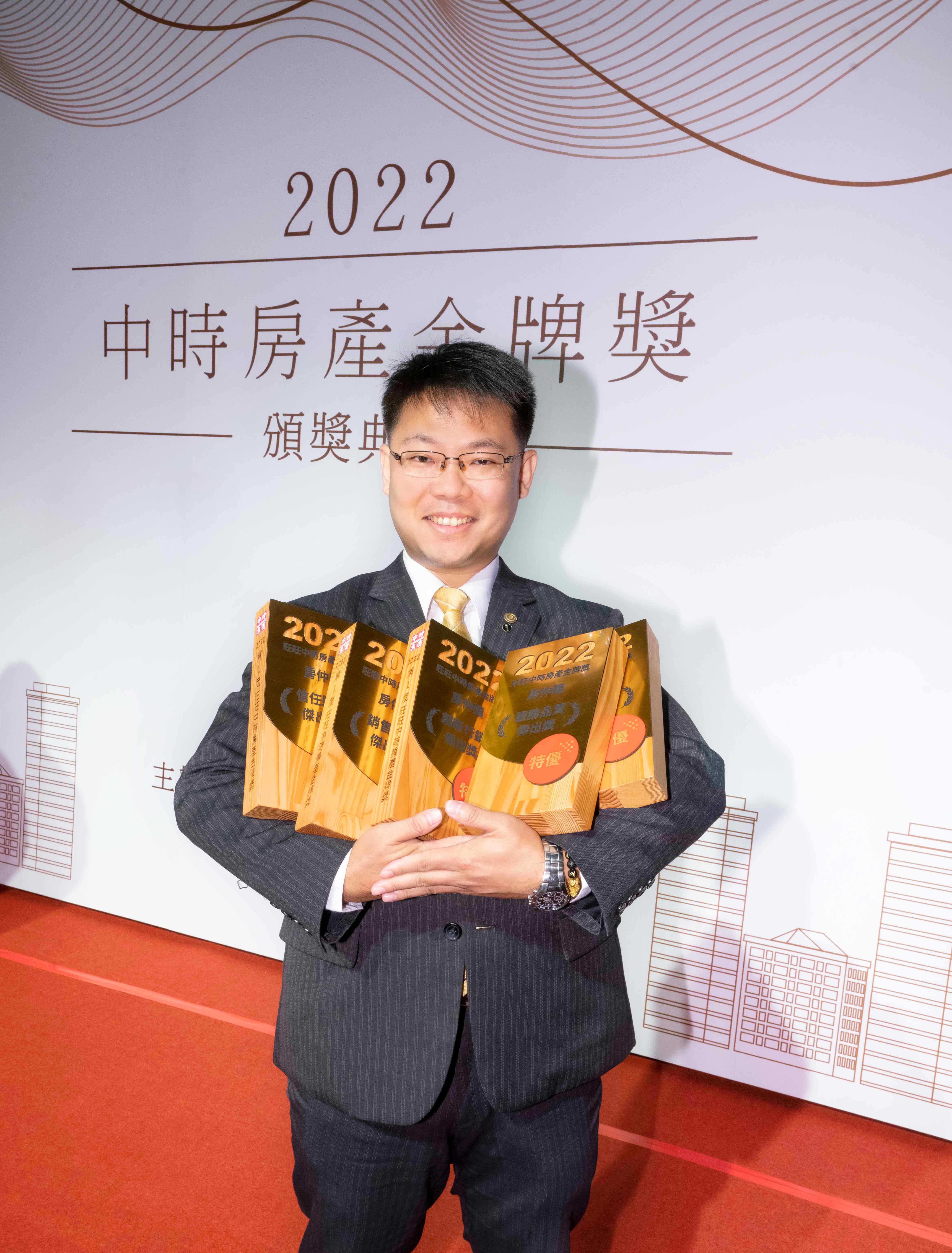 永慶房屋誠實服務再傳捷報!繼今年七月在「臺灣服務業大評鑑」拿下「連鎖房仲業金牌」十連霸的殊榮,今(9/27)在旺中集團舉辦的「第一屆中時房產金牌獎」頒獎典禮上,又包辦房仲業所有獎項:永續經營傑出獎、創新行銷傑出獎、服務品質傑出獎、銷售人氣傑出獎、信任夥伴傑出獎,共計五大獎項,是實至名歸的「台灣房仲第一品牌」。