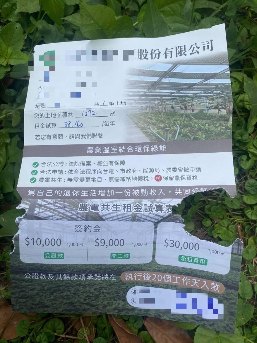 地方人士怒斥,土地掮客寄發的傳單裡頭,竟然可以詳細標註地主的土地面積、地號等,「為什麼這些個資都洩漏了?」
