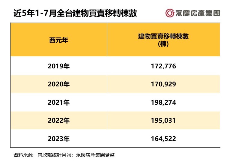 仍是5年新低! 全台1-7月房市交易16.45萬棟 年減15.6%
