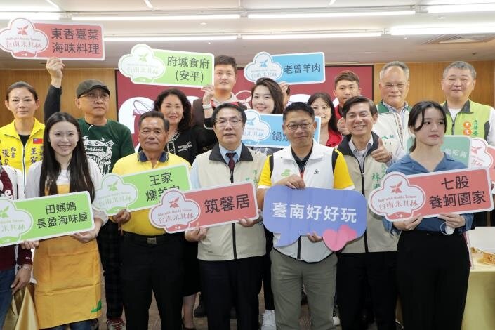 台南市長黃偉哲13日特別邀請入選的14間店家業者代表,一同出席宣傳記者會,為即將到來的8月米其林年度發表會進行備戰。圖/台南市政府提供