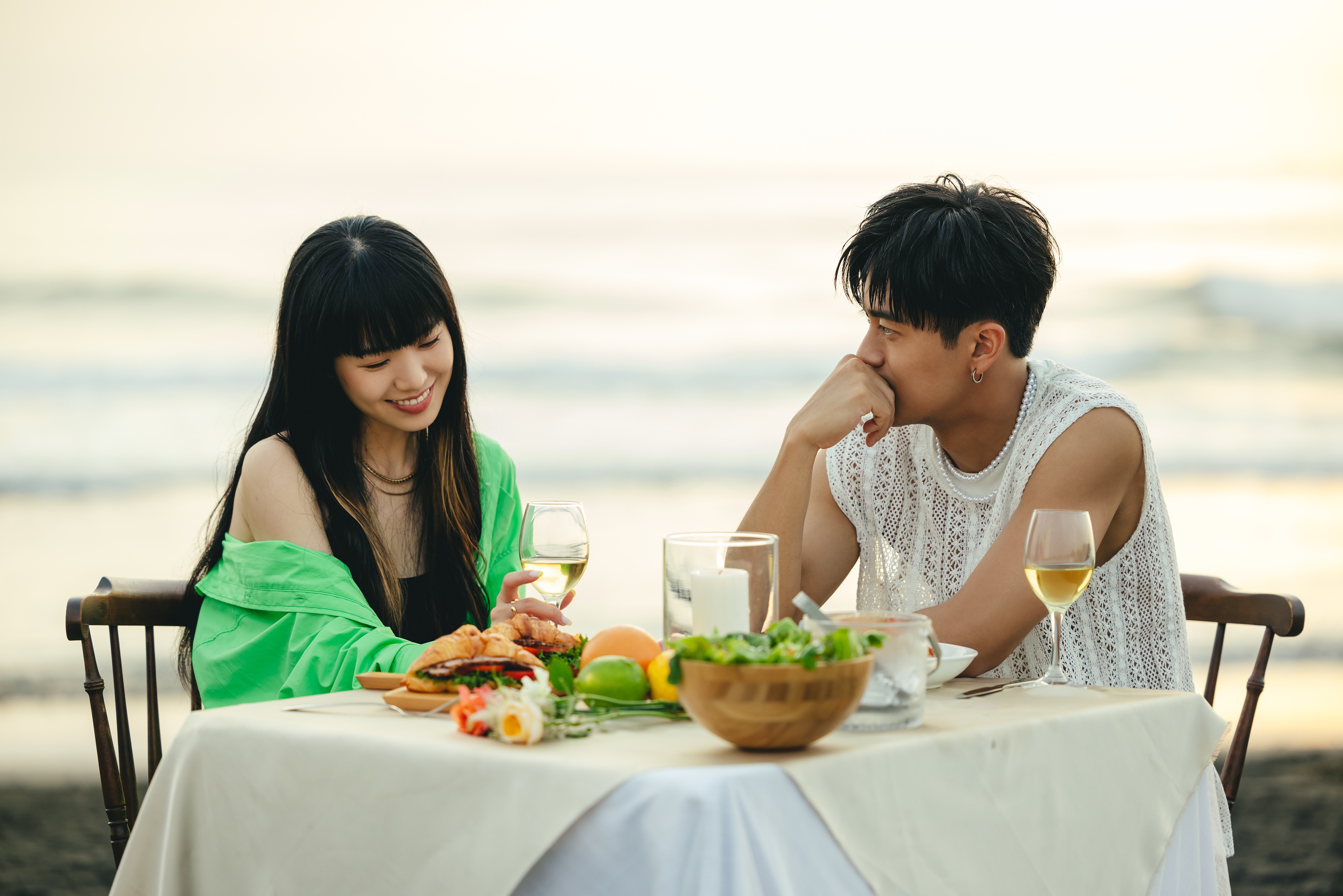 ▲兩人在海邊飾演曖昧期階段的情侶。(圖/華納音樂提供)